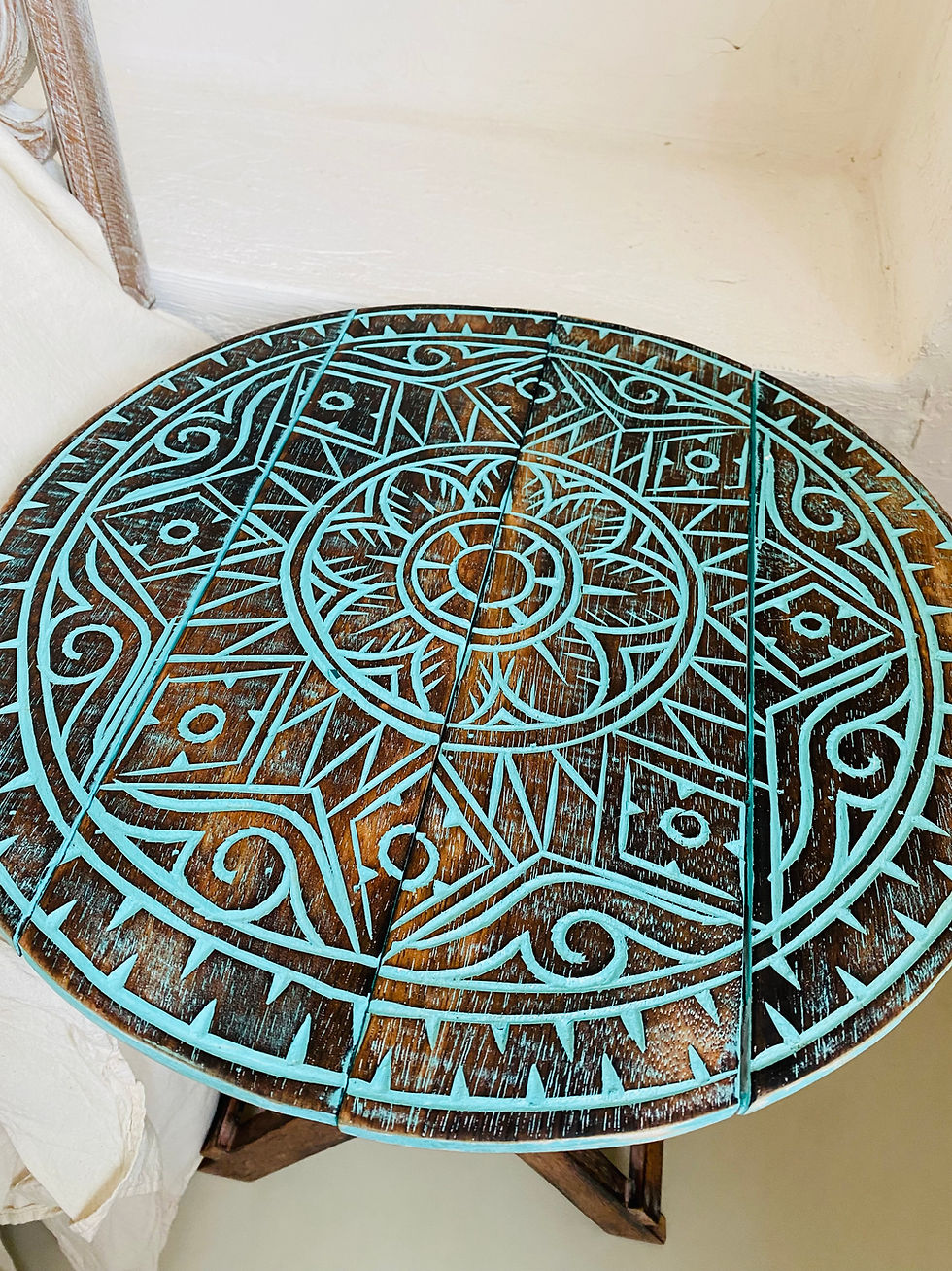 El Oyması Katlanır Yuvarlak Sehpa / Tabure Naturel - Küçük Boy